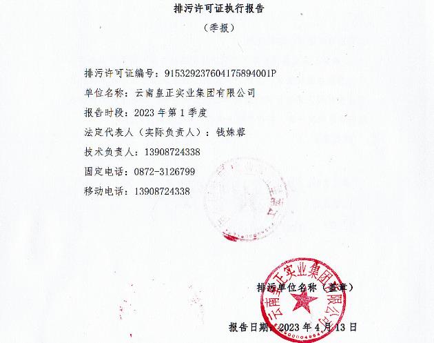 云南皇正實(shí)業(yè)集團(tuán)有限公司排污許可... 污許可執(zhí)行報(bào)告2023年2月(月報(bào))