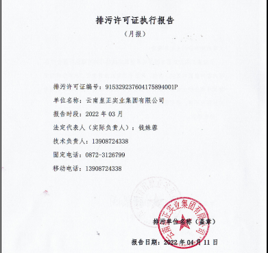 云南皇正實(shí)業(yè)集團(tuán)有限公司4月排污... 4月排污許可執(zhí)行報(bào)告