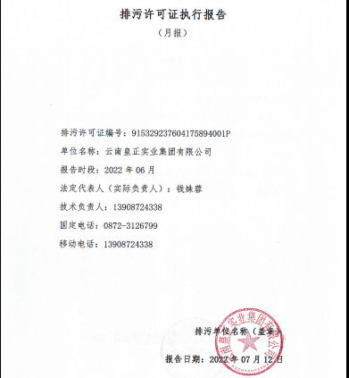 2022-07-19 排污許可證執(zhí)行報(bào)告6月份月報(bào) 查看更多>>