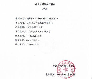 2022-07-19 排污許可證季報(bào)-第二季度 查看更多>>